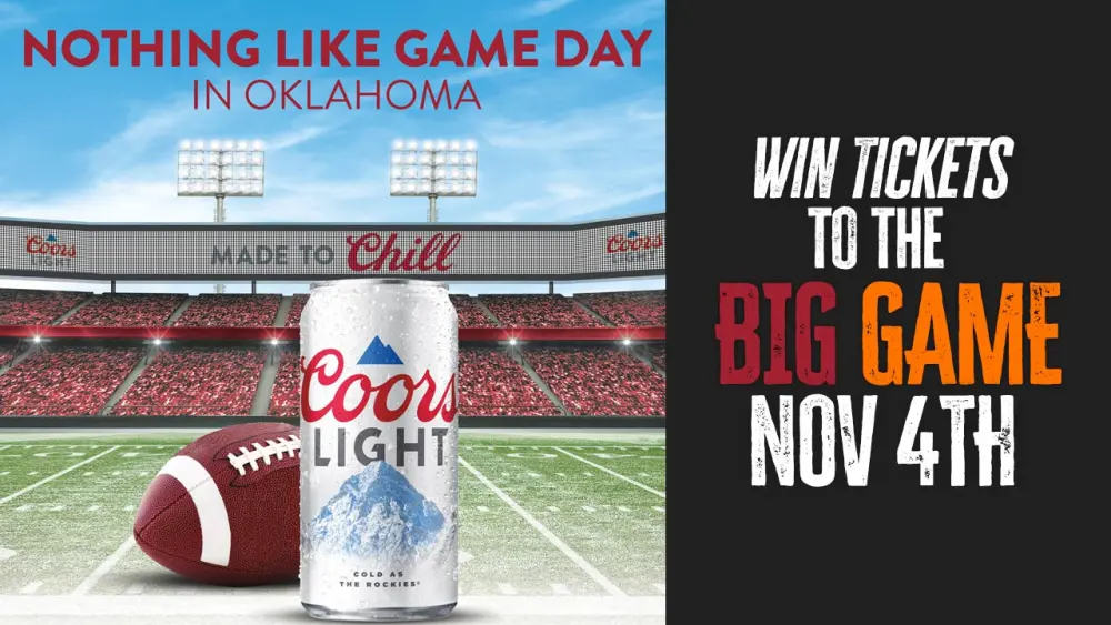 98.5 The Bull is teaming up with Coors Light to send you to the BIG game on November 4th between Oklahoma’s two largest universities. From October 1st through October 26th at 6pm you can visit the Coors Light watering holes listed below to scan the QR code to register to win a pair of tickets. You can also join 98.5 The Bull from 4pm to 6pm for happy hour on the dates listed below at each location for the chance to win prizes and enjoy an ice-cold Coors Light while showing your team spirit!